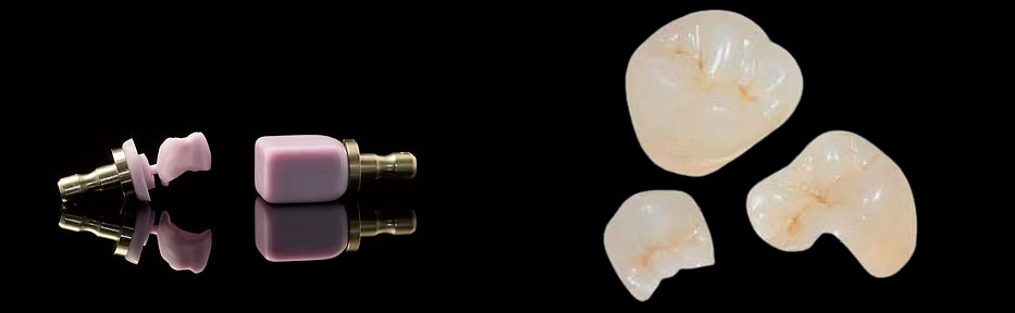 Coronas dentales: Se emplea en la fabricación de coronas tanto en dientes anteriores (zona estética) como en dientes posteriores (zona de carga).